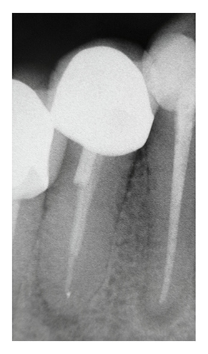 Zementierte, geschraubte Metallstifte, die maximal in das mittlere Kanaldrittel reichen, lassen sich in der Regel gut radiologisch beurteilen und bieten häufig günstige Voraussetzungen für eine kontrollierte Entfernung (Abb. 1).